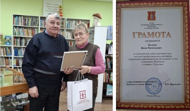Депутат муниципального округа Вороново поздравила жителя п. Рогово с юбилеем. -