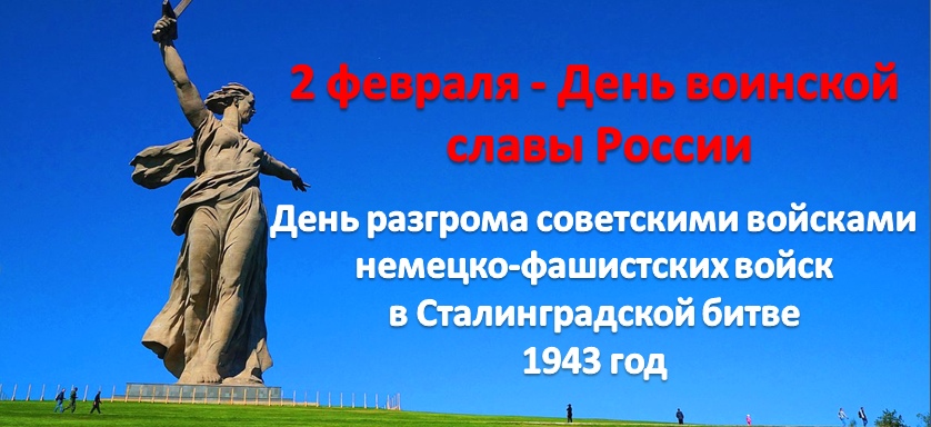 День воинской славы России — День разгрома советскими войсками немецко-фашистских войск в Сталинградской битве. -