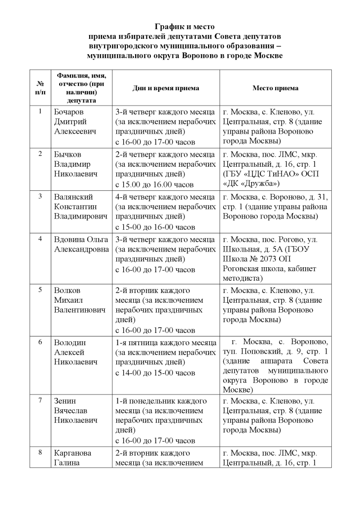 Обращаем ваше внимание, что личный прием граждан депутатами Совета депутатов муниципального округа Вороново осуществляется по предварительной записи.